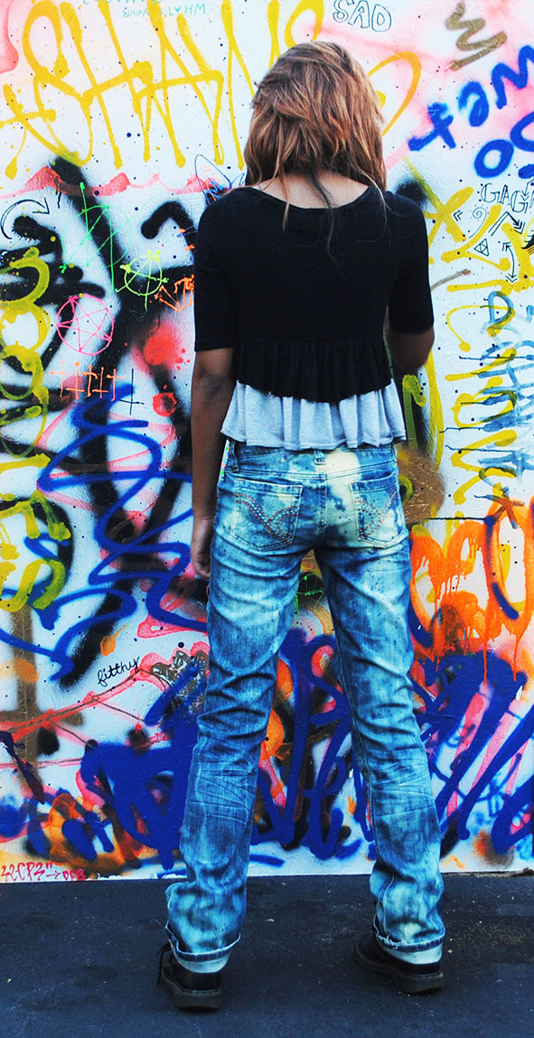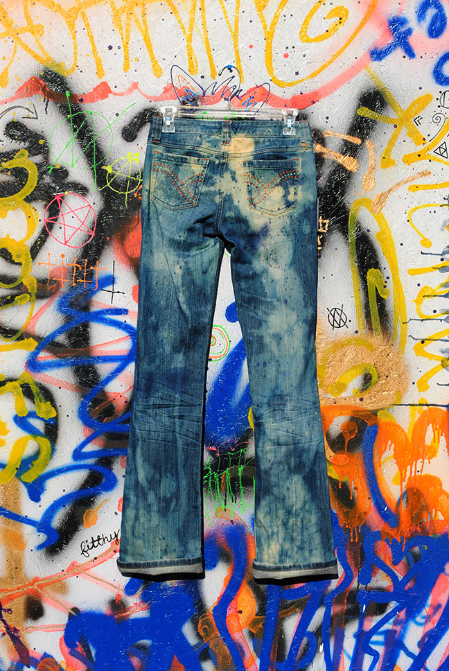 These one-of-a-kind & rocked-out jeans were treated with bleach and black splatter. Size 1 Hand-made & designed in Philadelphia, PA