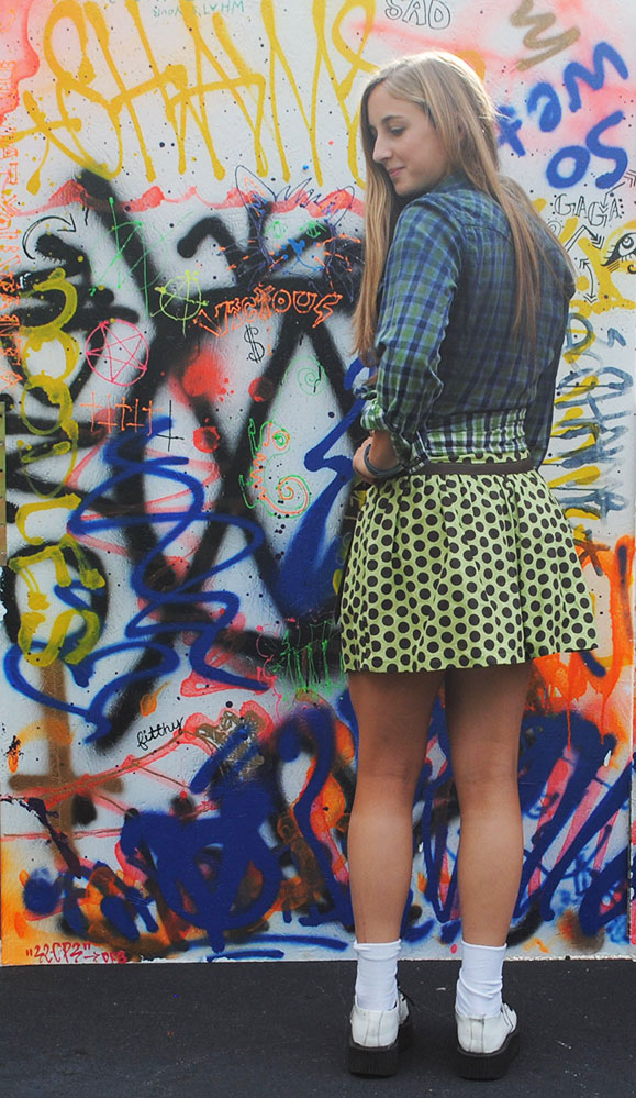 This hand-made, one-of-a-kind, up-cycled vintage green flannel was dip dyed black from the top. The top also features metal rhinestones on the front.