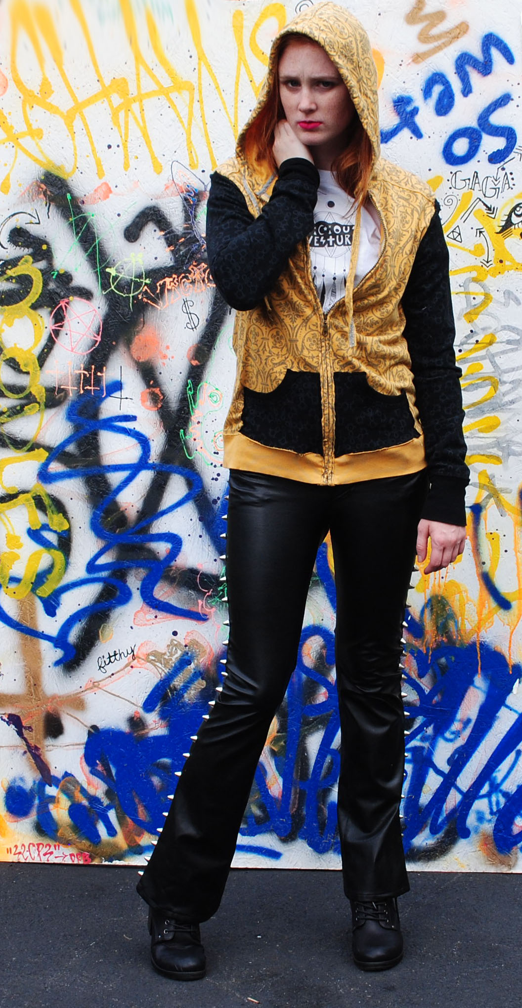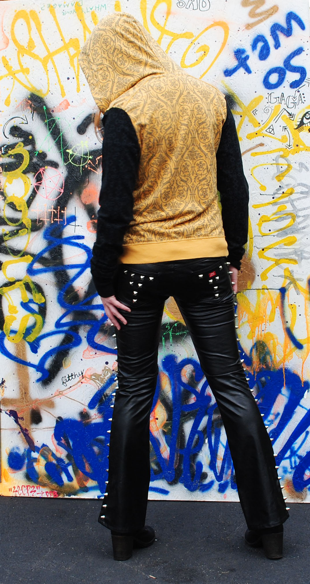 This hand-made, one-of-a-kind, up-cycled hoodie was swapped sleeves and pockets to create a multi-colored hoodie. Size Large Hand-made & designed in Philadelphia, PA