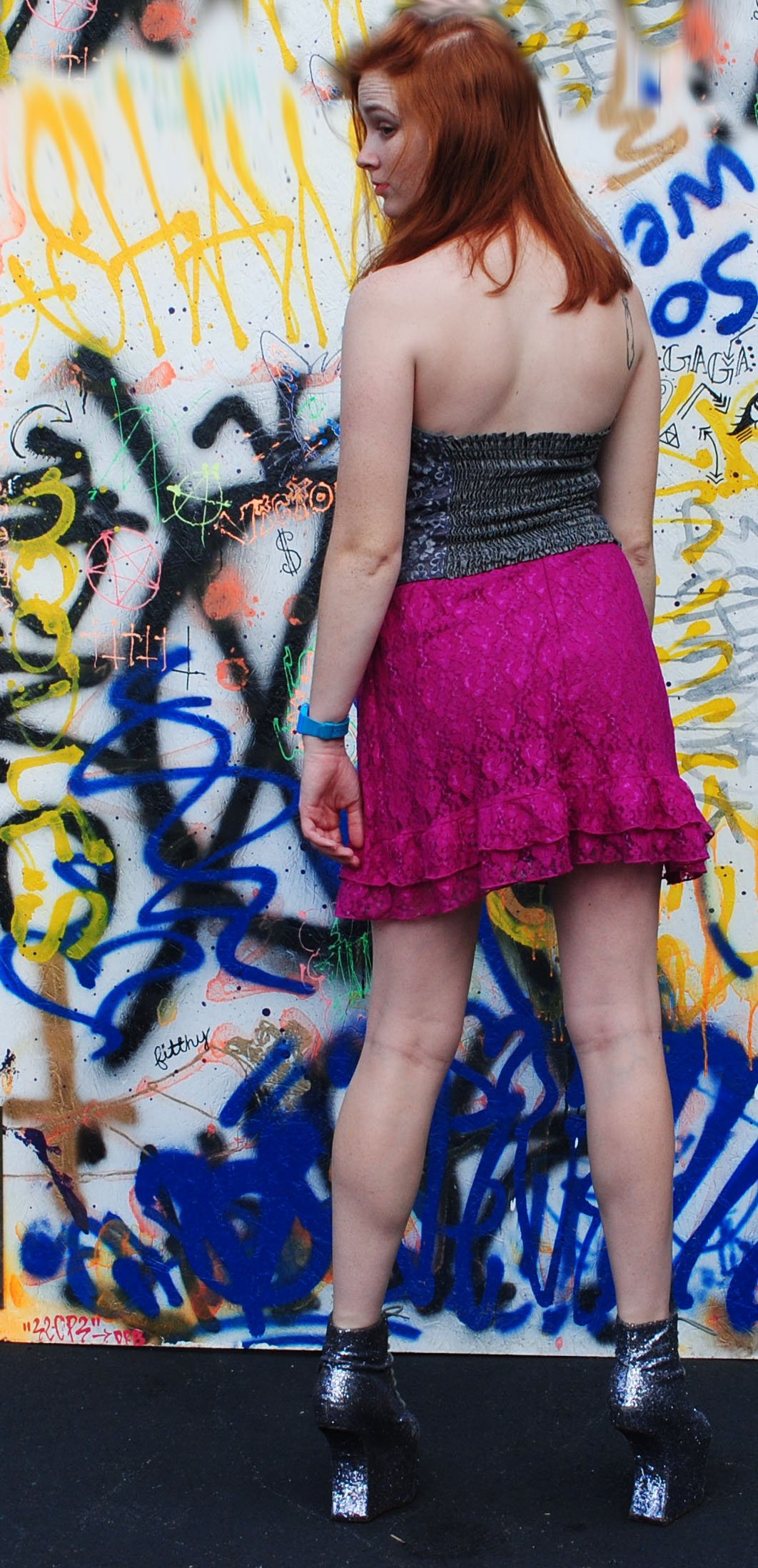 This hand-made, one-of-a-kind, vintage lace corset was purchased at the Punk Rock Flea market and up-cycled with a pink lace skirt to create a whole new slip on dress. Size Medium Hand-made & designed in Philadelphia, PA
