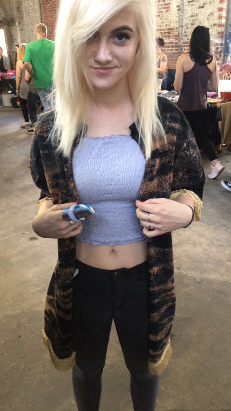 Hand-made bleached kimono with fringe and pentagram anti-dye on back