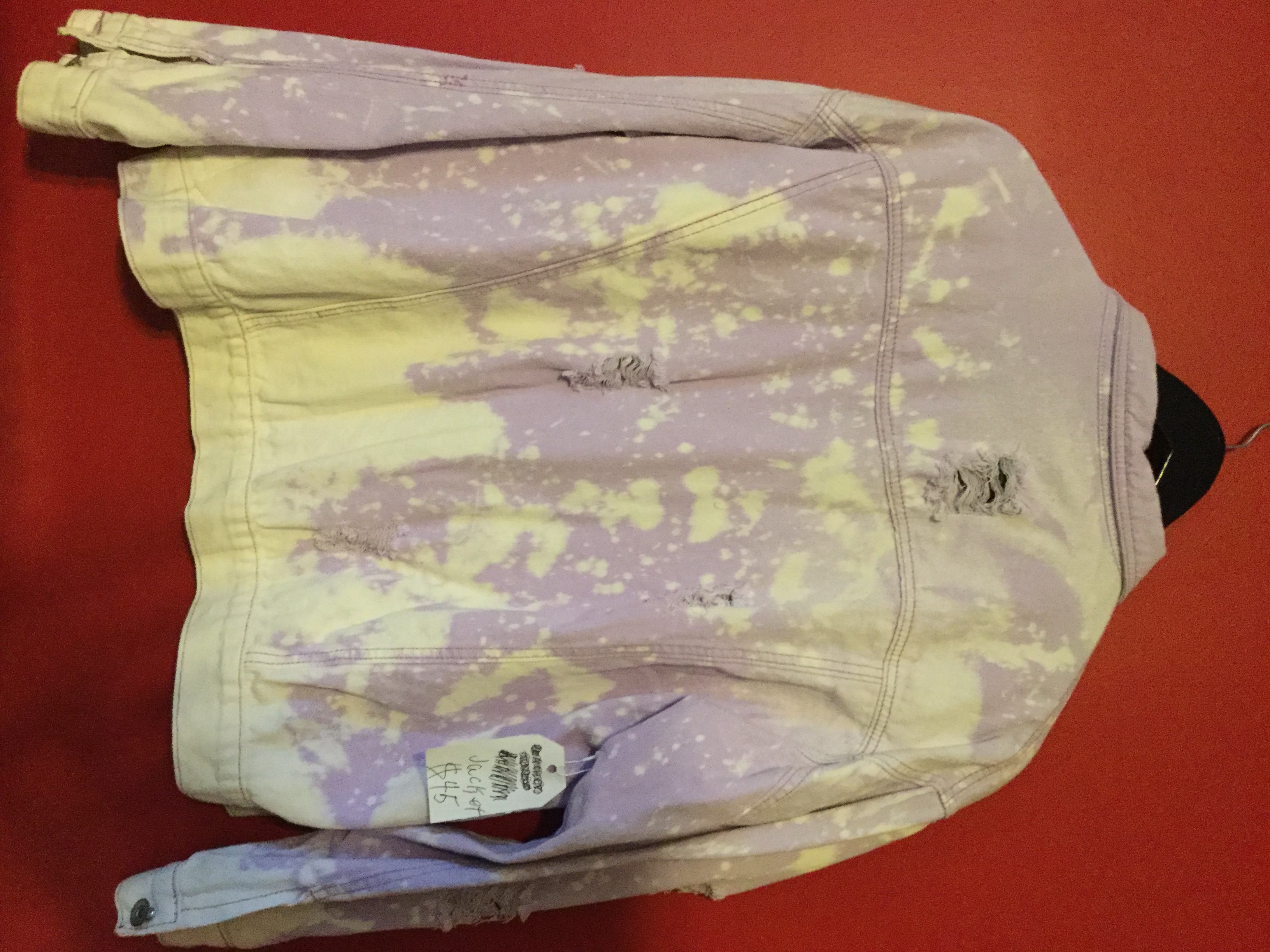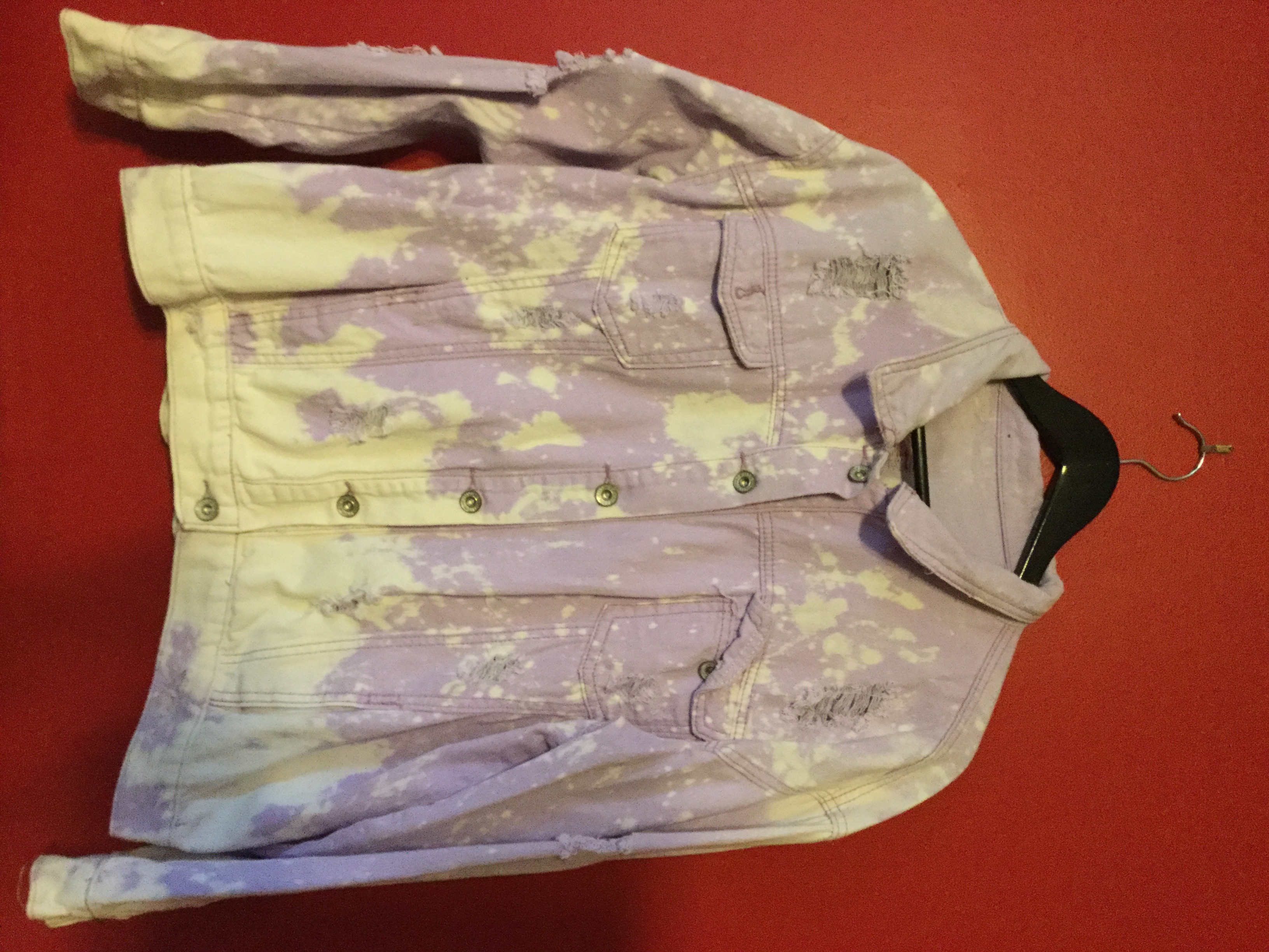 Over-sized lilac Denim Jacket bleached splattered by Shelby Cobra