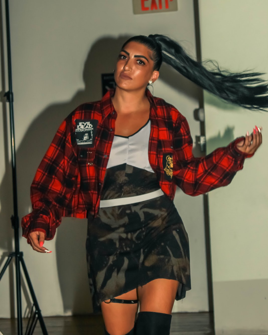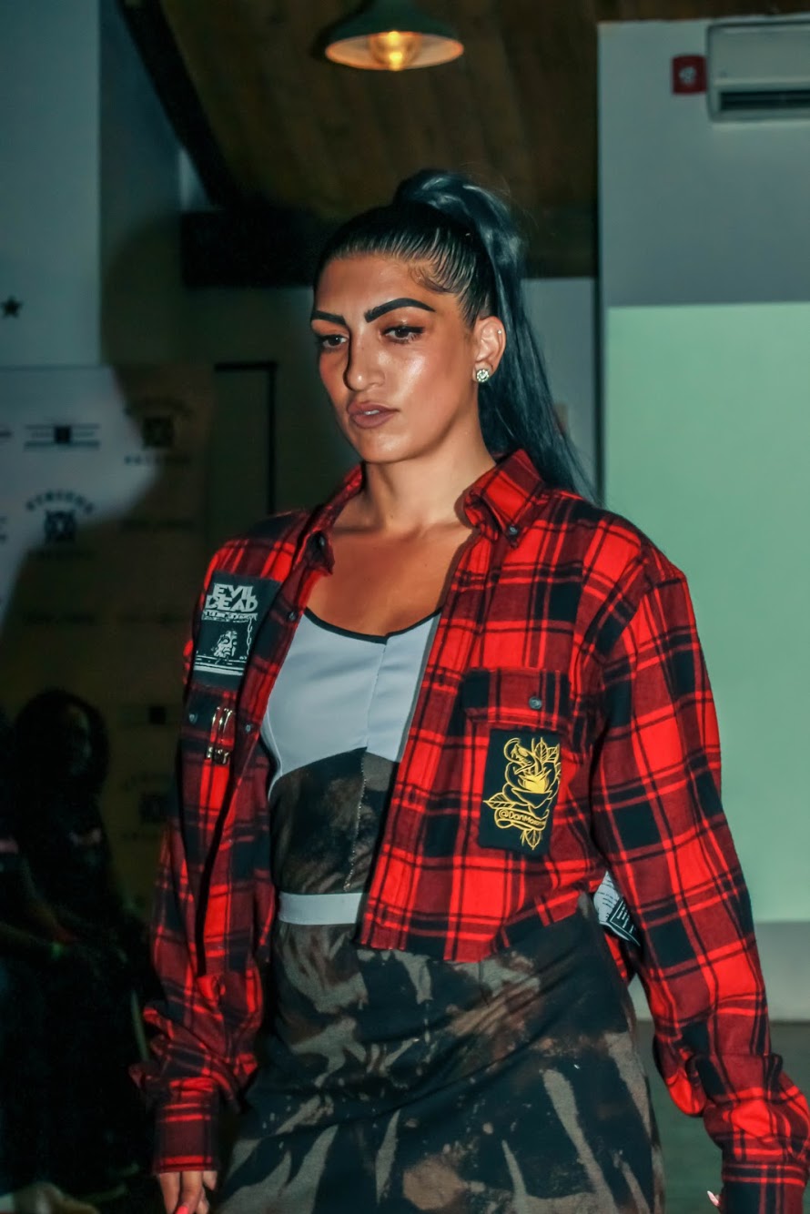 Stretch material color blocked dress with bleached skirt and 28” elastic waist size small