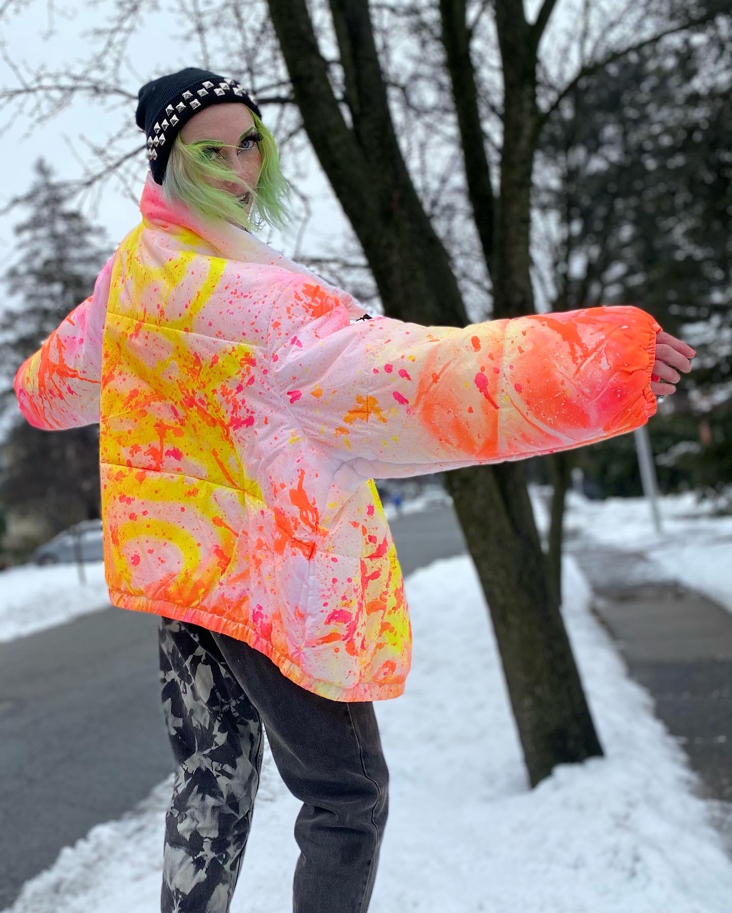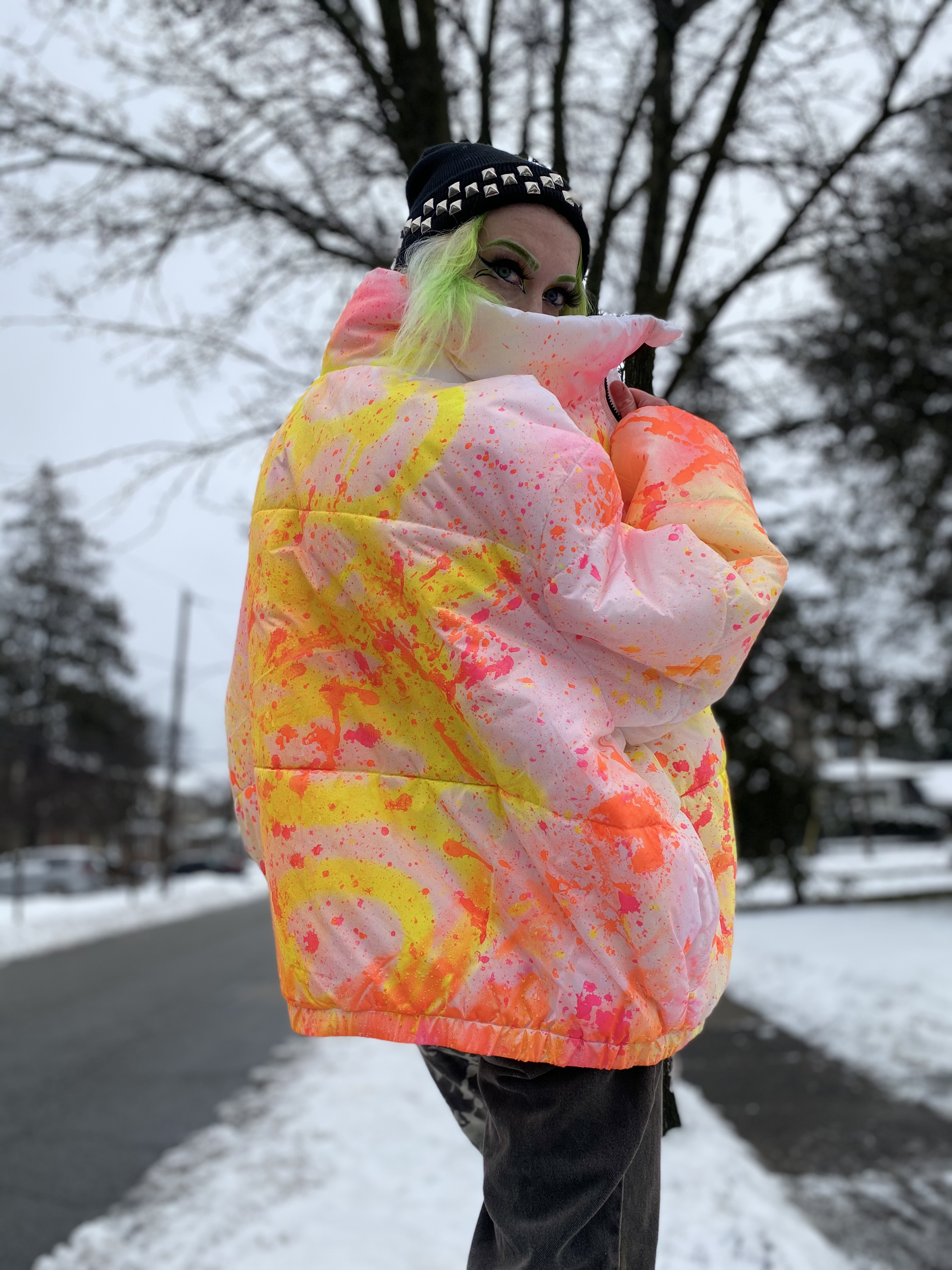 XXXL Puffy Jacket spray painted by hand with subtle cobra couture logos