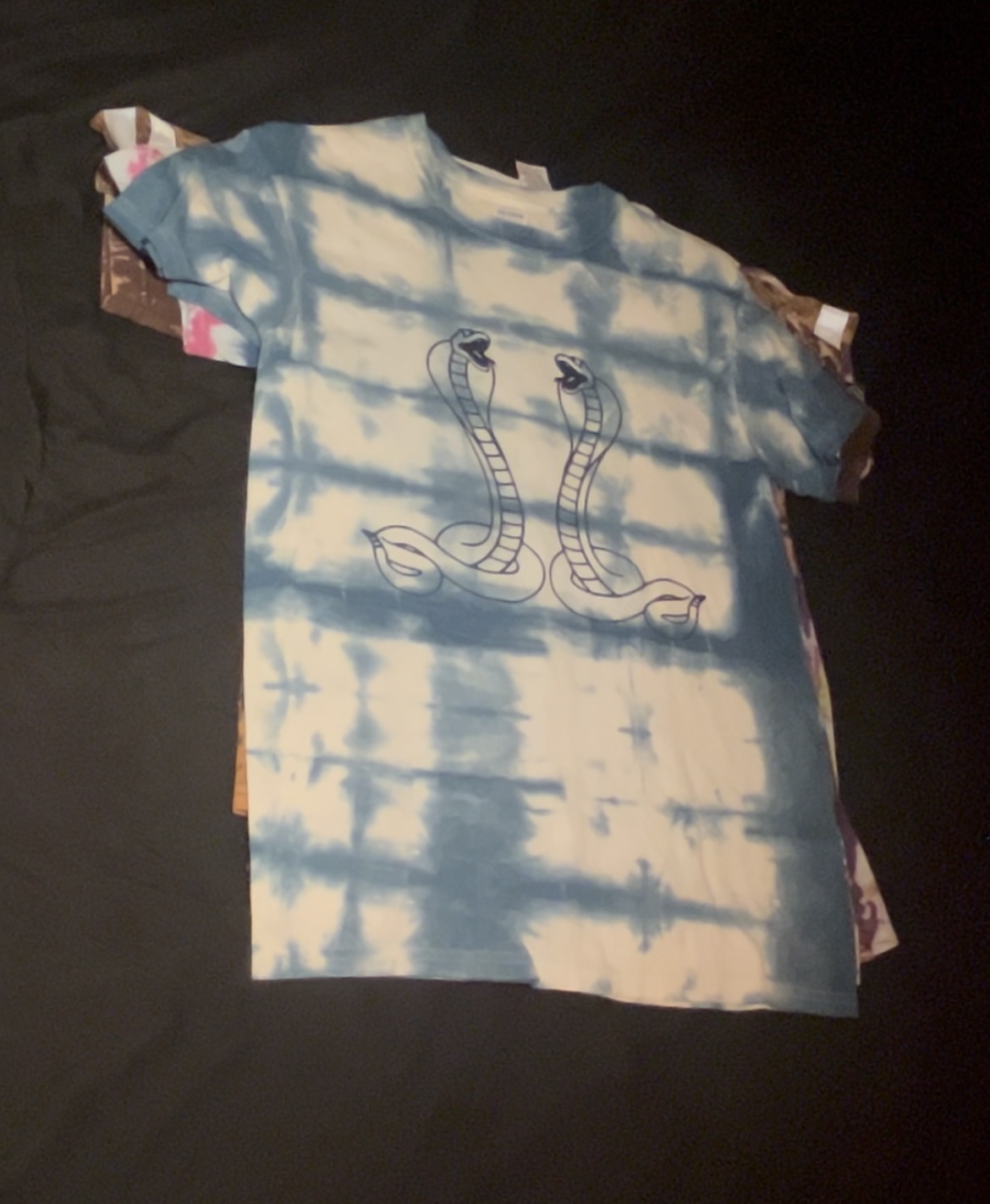 Indigo Dyed Tshirt with Cobra decals designed by Cassi Punk Size Small